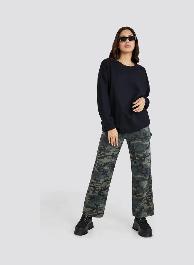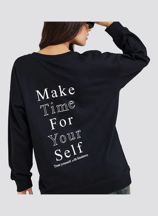 Styli Back Slogan Print Oversized Longline Sweatshirt