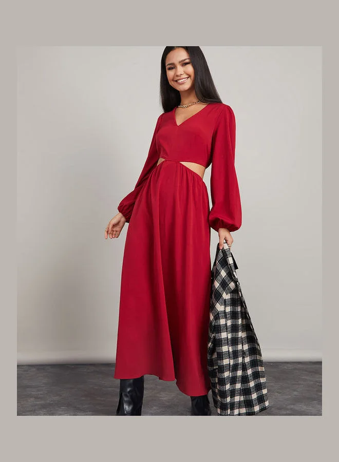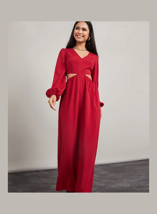 Styli Balloon Sleeves Cut-Out Waist Detail A-Line Maxi Dress