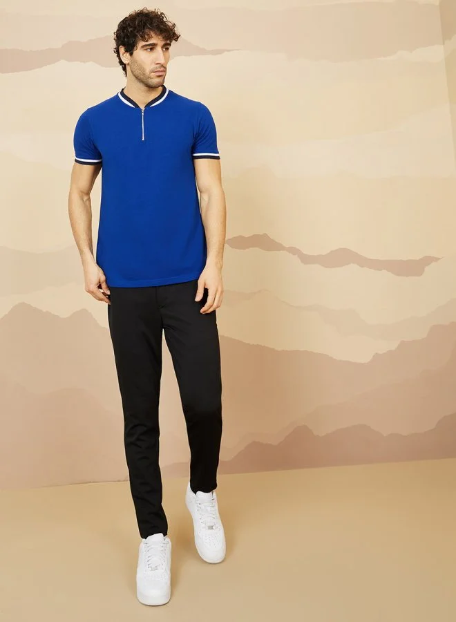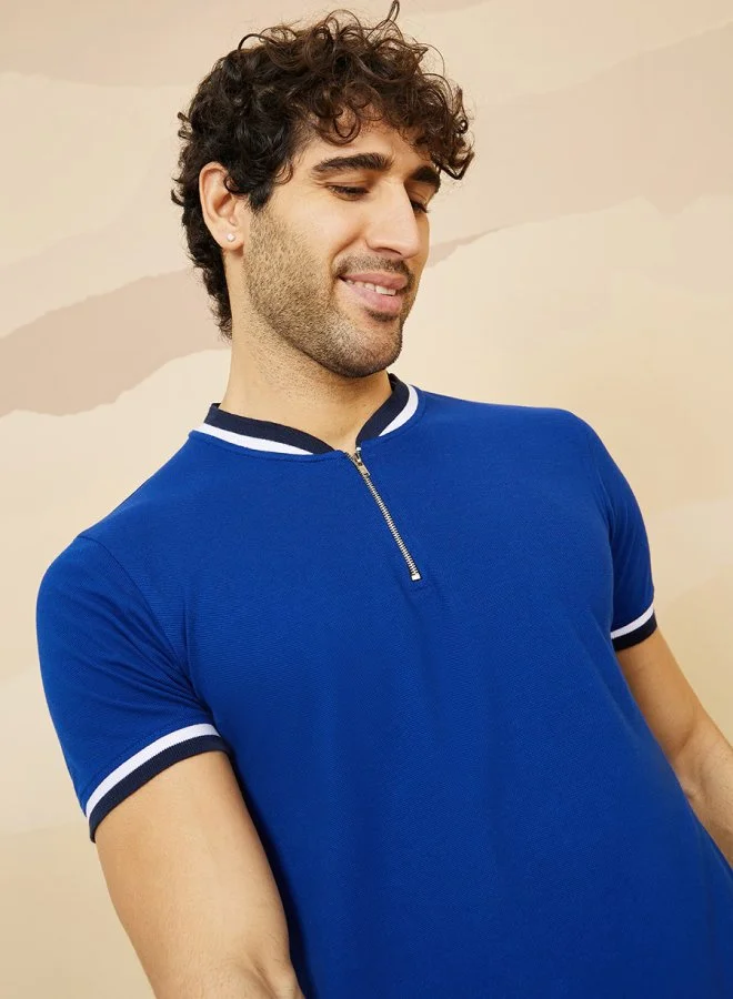 Styli Baseball Collar Pique Polo with Twin Tipping Detail