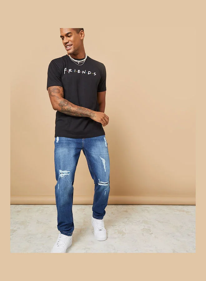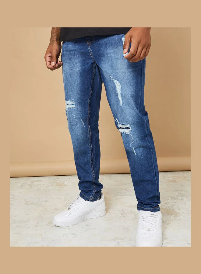 Styli Distressed Regular Fit Flannel Repair Jeans
