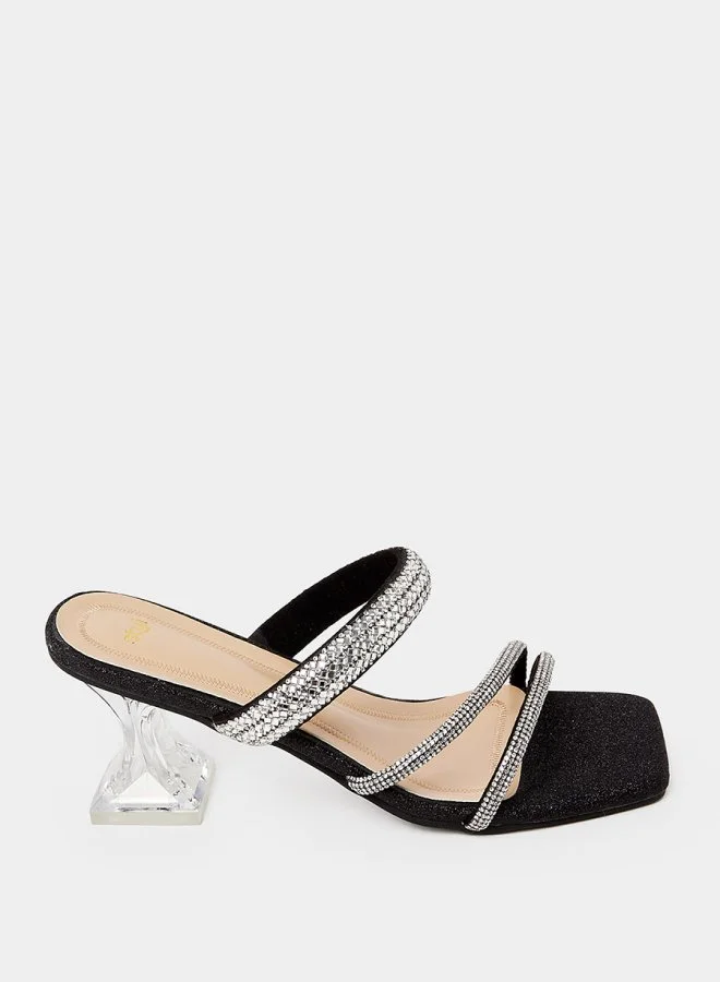 Styli Embellished Strap Detail Block Heel Sandals