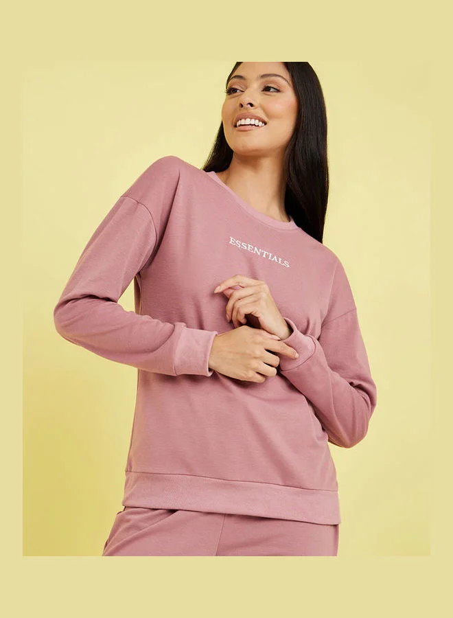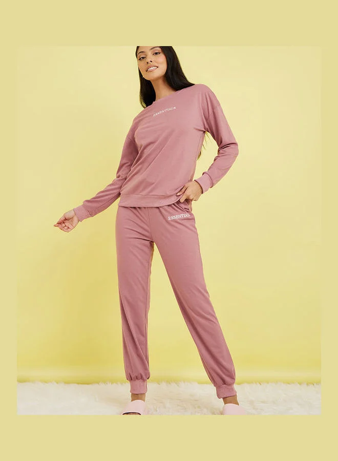 Styli Essentials Embroidered Logo Long Sleeves Top and Loopback Jogger Lounge Set