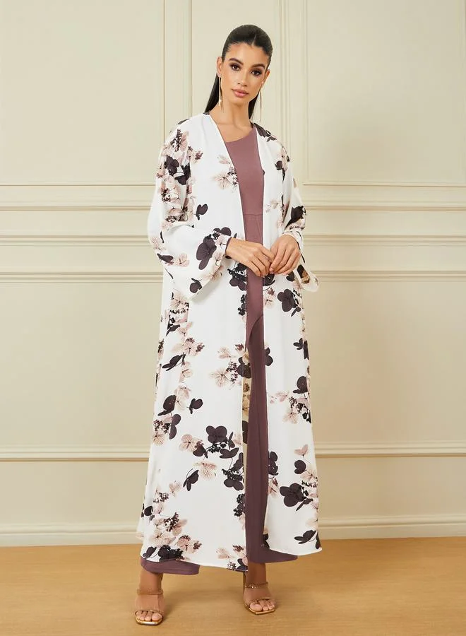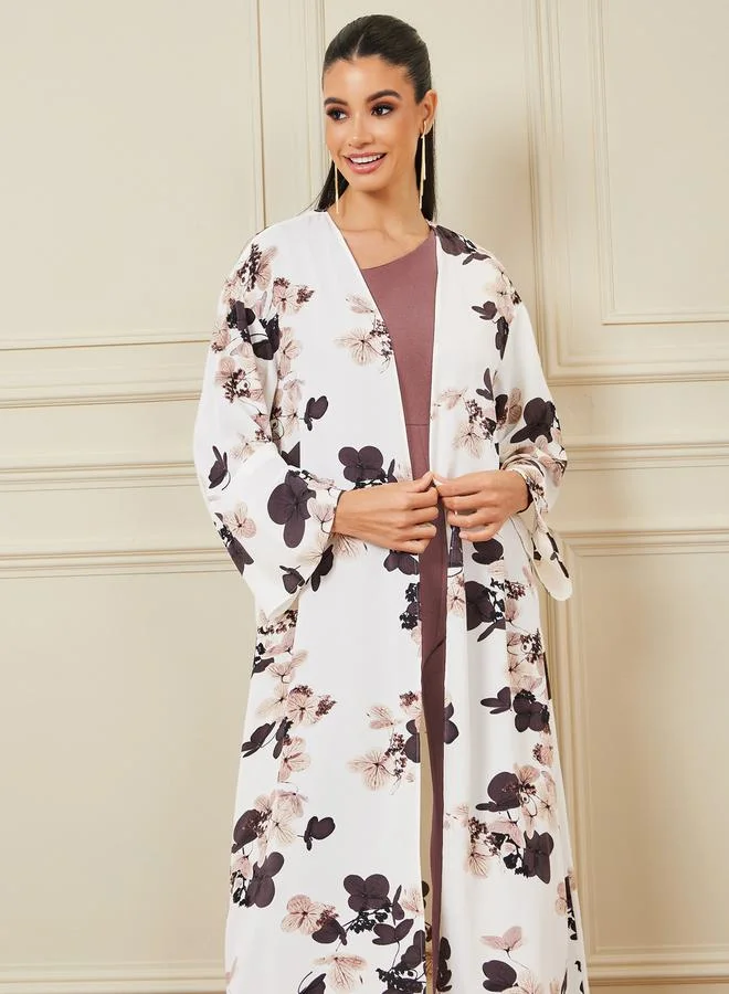 Styli Floral Print Maxi Length Kimono