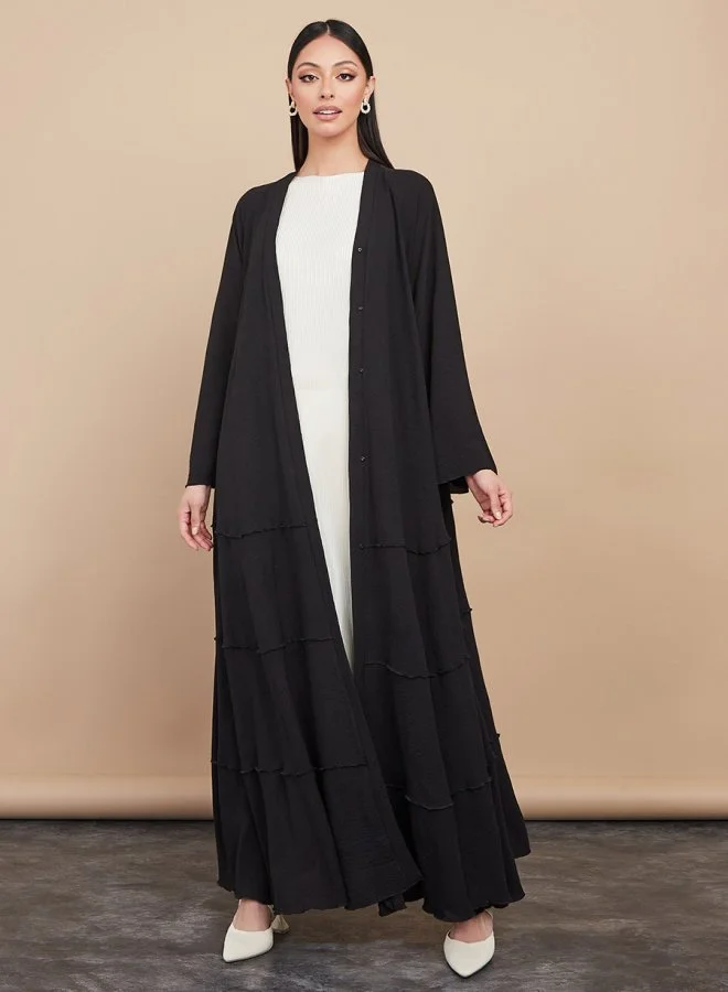 Styli Frill Detail Abaya with Button Closure