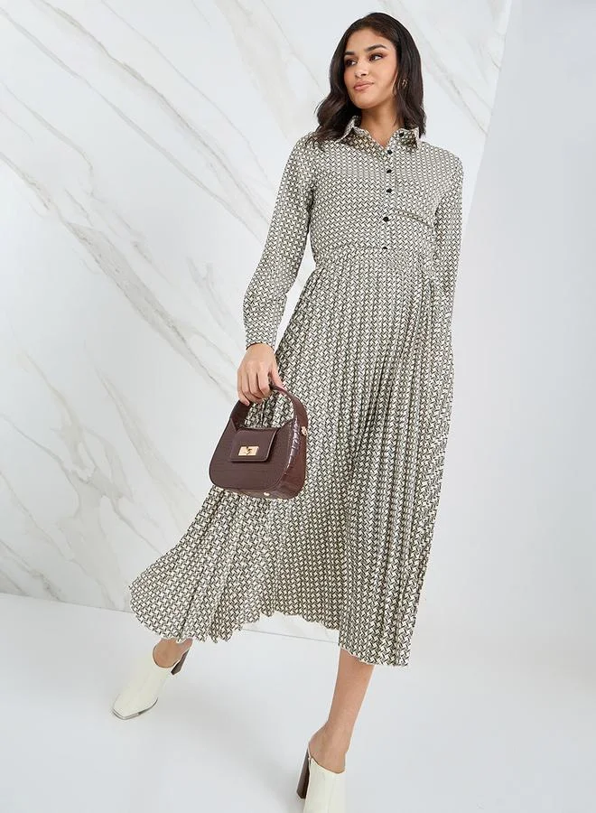 Styli Geo Print Regular Shirt & Pleated Skirt Co-Ords