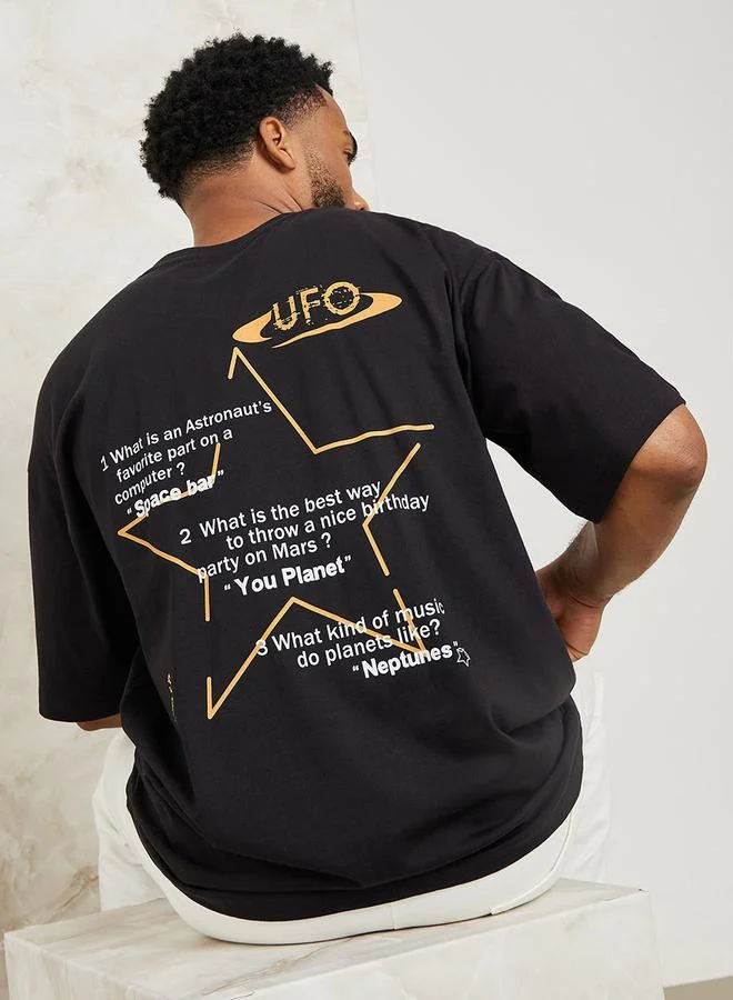 Styli Graphic Print Crew Neck Oversized T-Shirt
