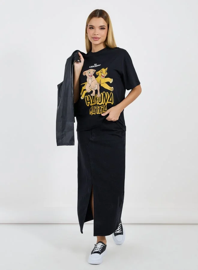 Styli Graphic Print Round Neck Oversized T-shirt