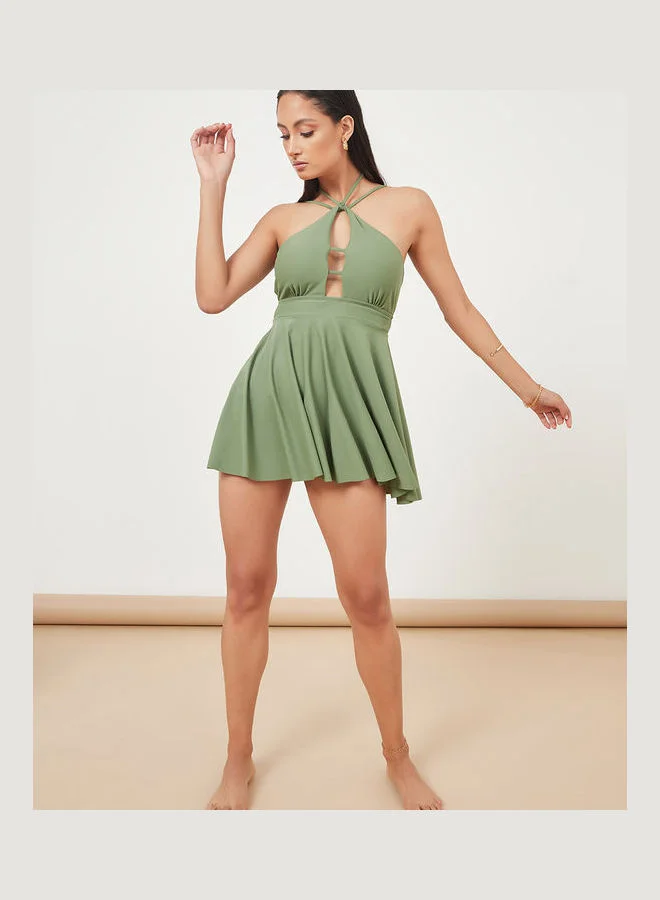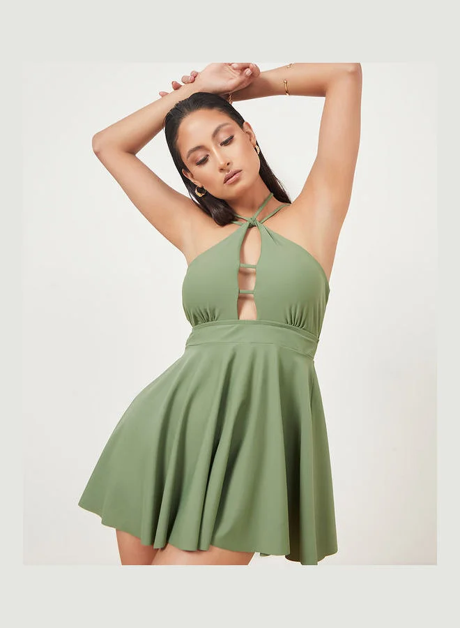Styli Halter Neck Cut Out Detail Tankini Top