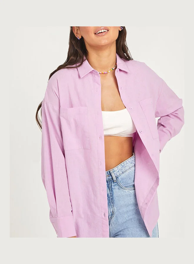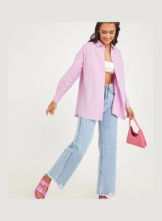 Styli Linen Look Oversized Shirt with Patch Pocket Detail