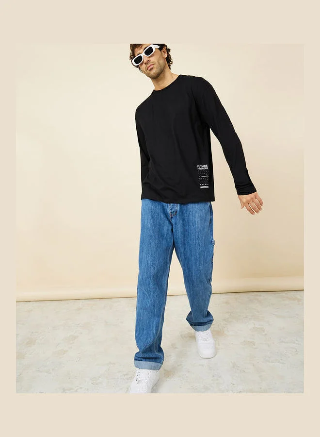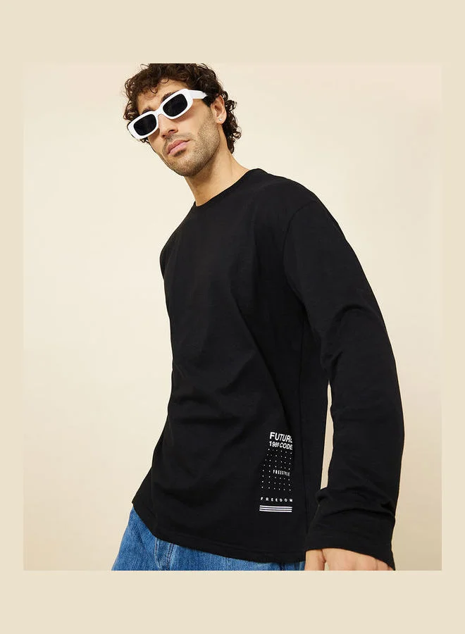 Styli Long Sleeves Oversized T-shirt with Minimal Print Detail