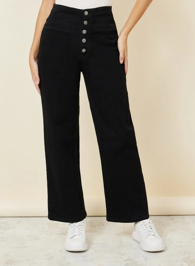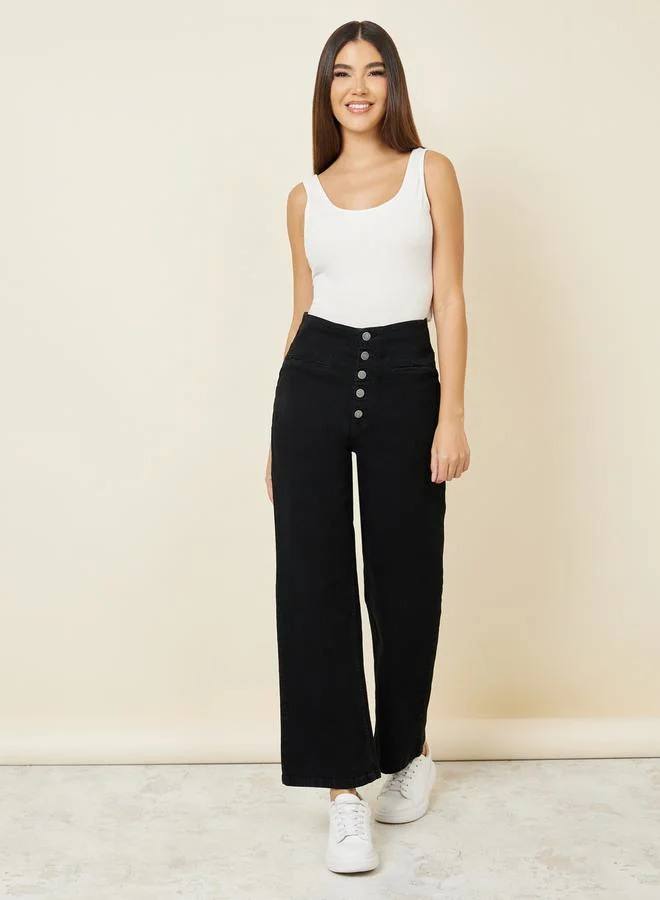 Styli Multi Button Placket Wide Leg High Rise Jeans