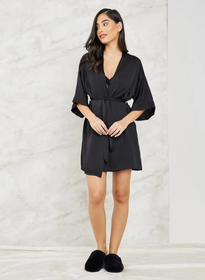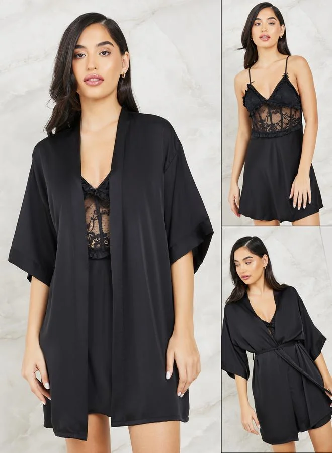 Styli Pack of 2 - Corset Style Lace & Ruffle Satin Slip Dress & Robe