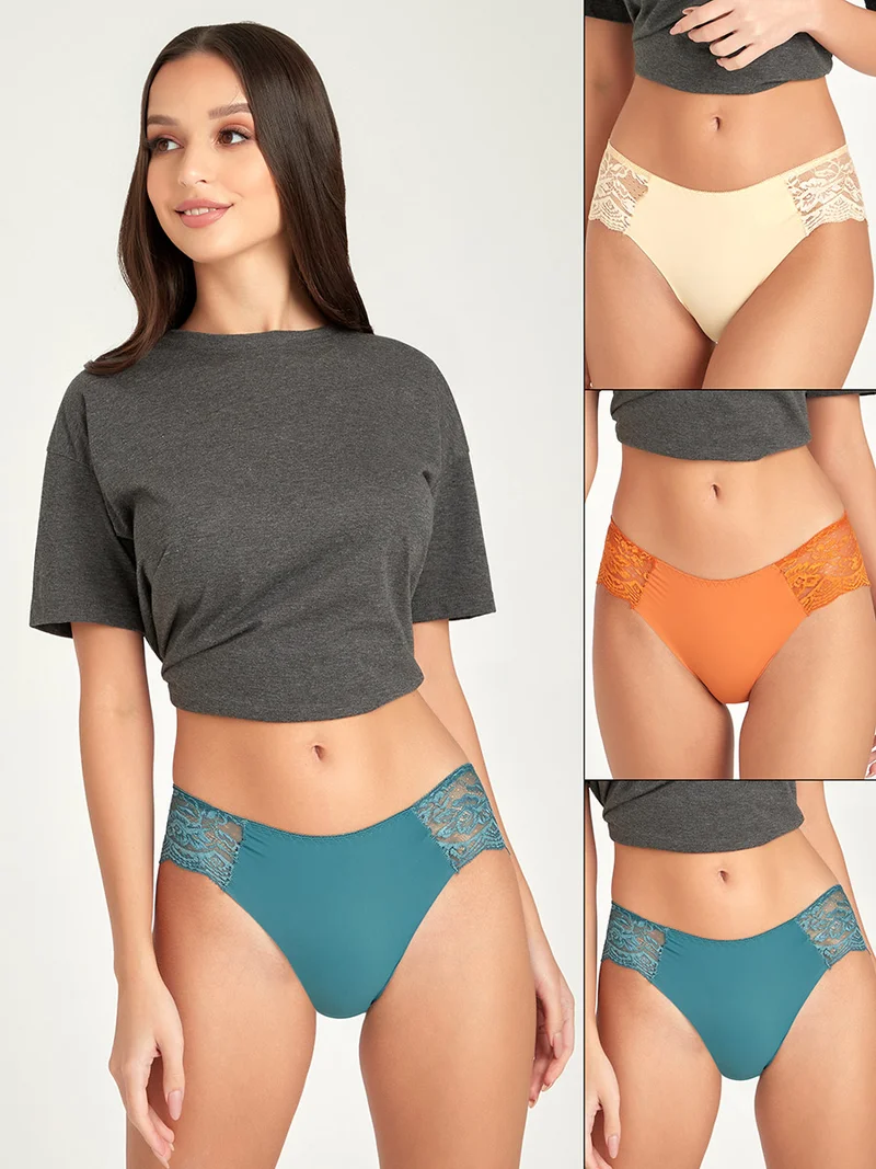 Pack of 3 - Solid Scallop Lace Side and Back Detail Midi