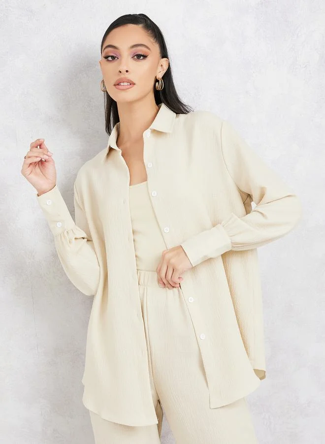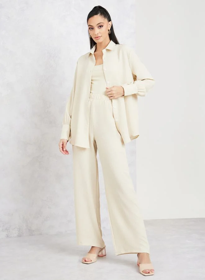Styli Pack of 3 - Textured Longline Shirt Slip and Pant Co-ord Set