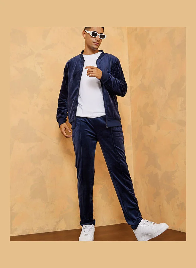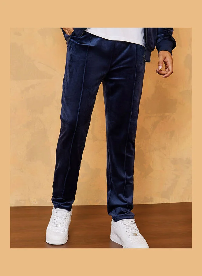 Styli Pintuck Detail Regular Fit Velour Jogger with Embroidered Detail