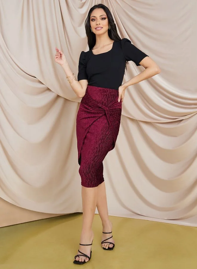 Styli Plisse Knotted Front Midi Skirt