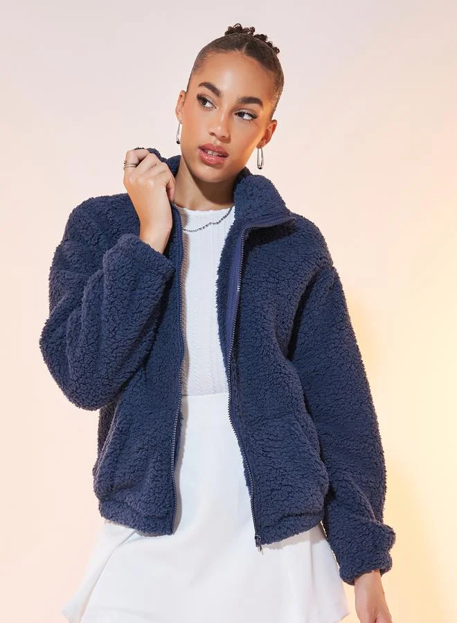 Styli Regular Fit Regular Length Faux Fur Bomber Jacket