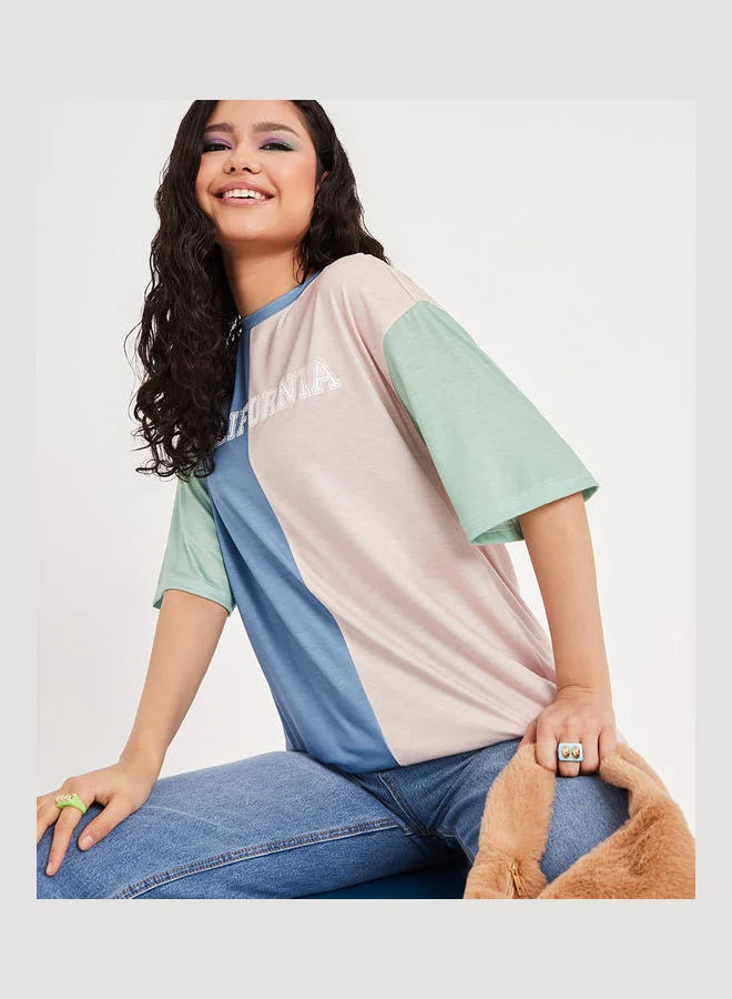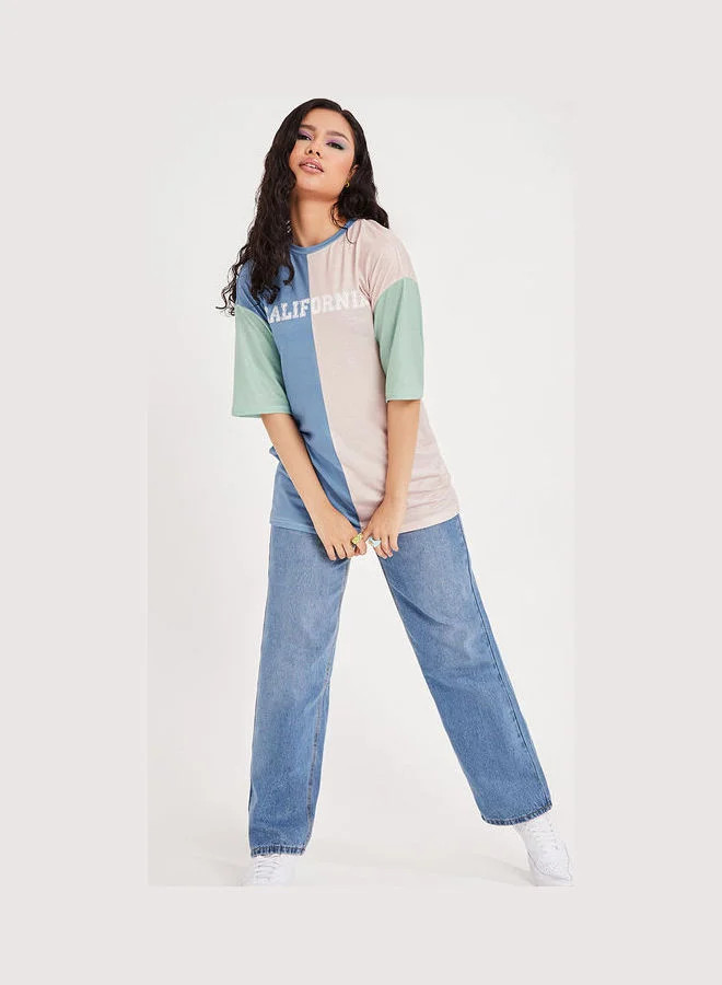 Styli Short Sleeves Colorblock California Print Oversized Longline Tshirt