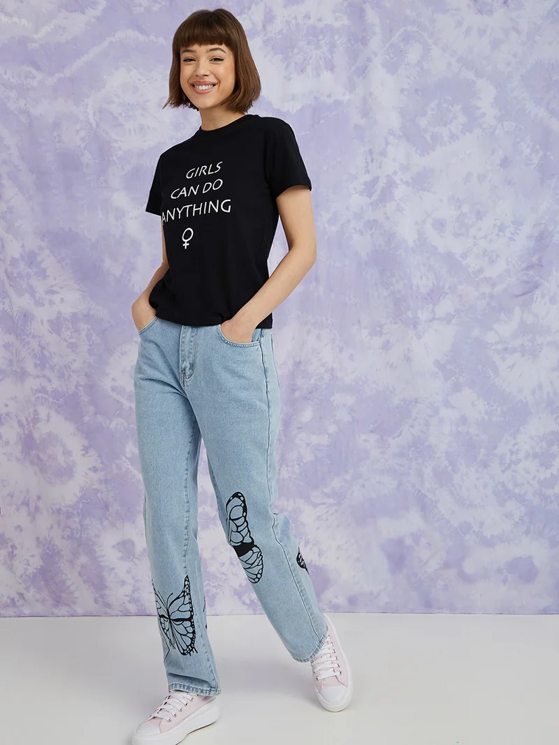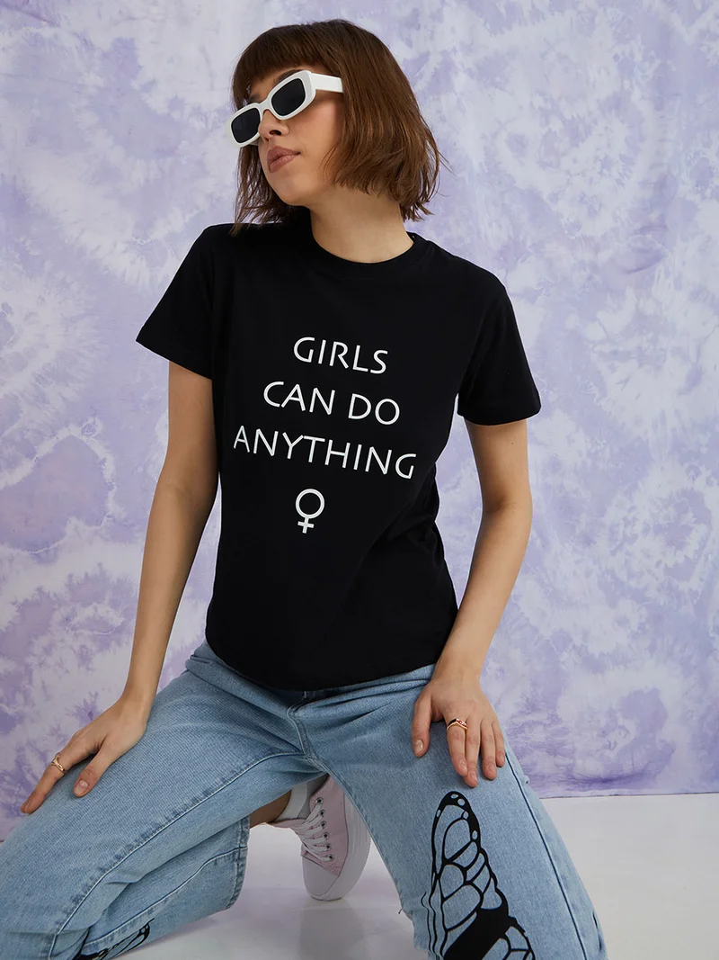 Styli Short Sleeves Girls Can Do Anything Regular Fit T-shirt