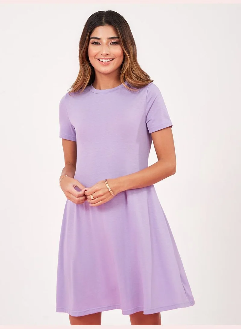Styli Short Sleeves Round Neck A-Line Mini Dress