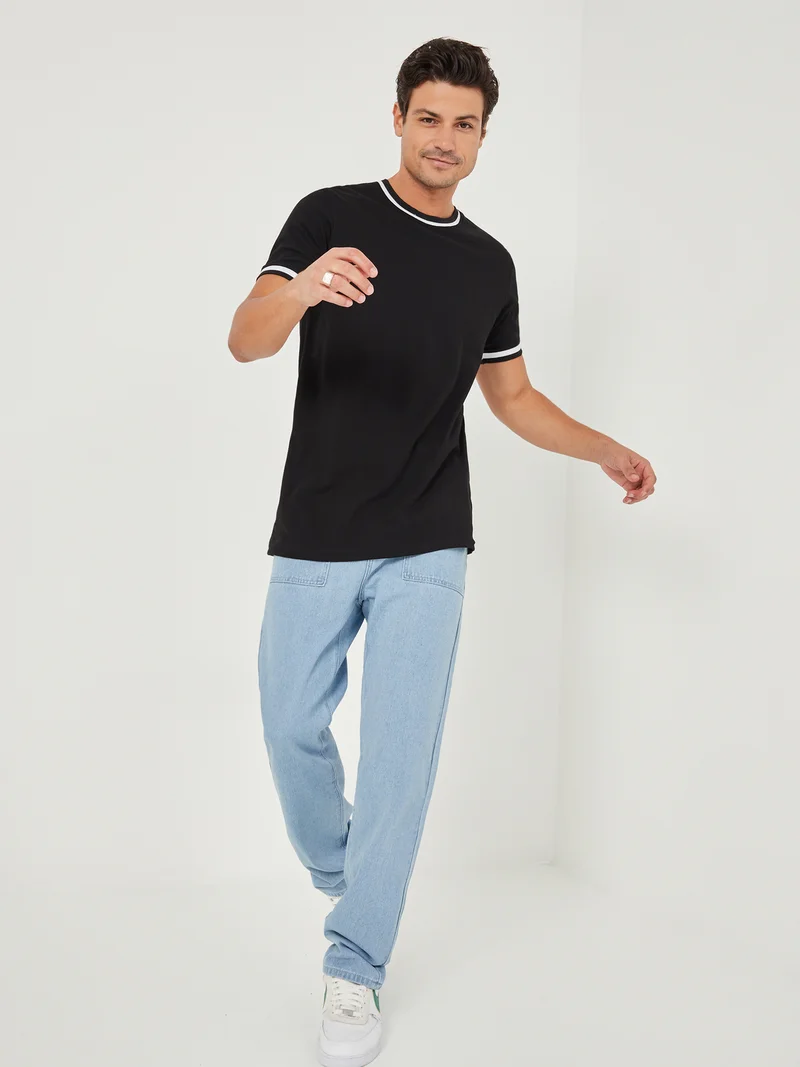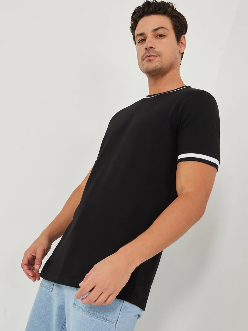 Styli Solid Pique Crew Neck Ringer T-Shirt with Twin Tipping