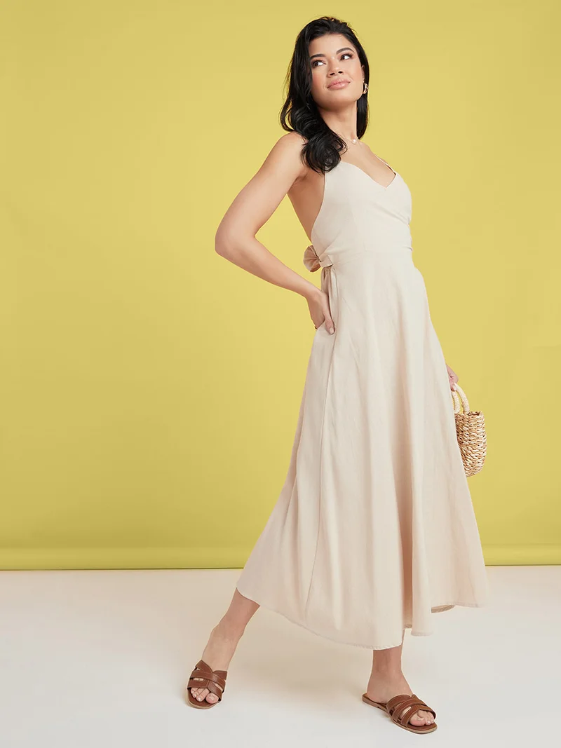 Styli Strappy Crossback A-Line Maxi Dress with Tie Back