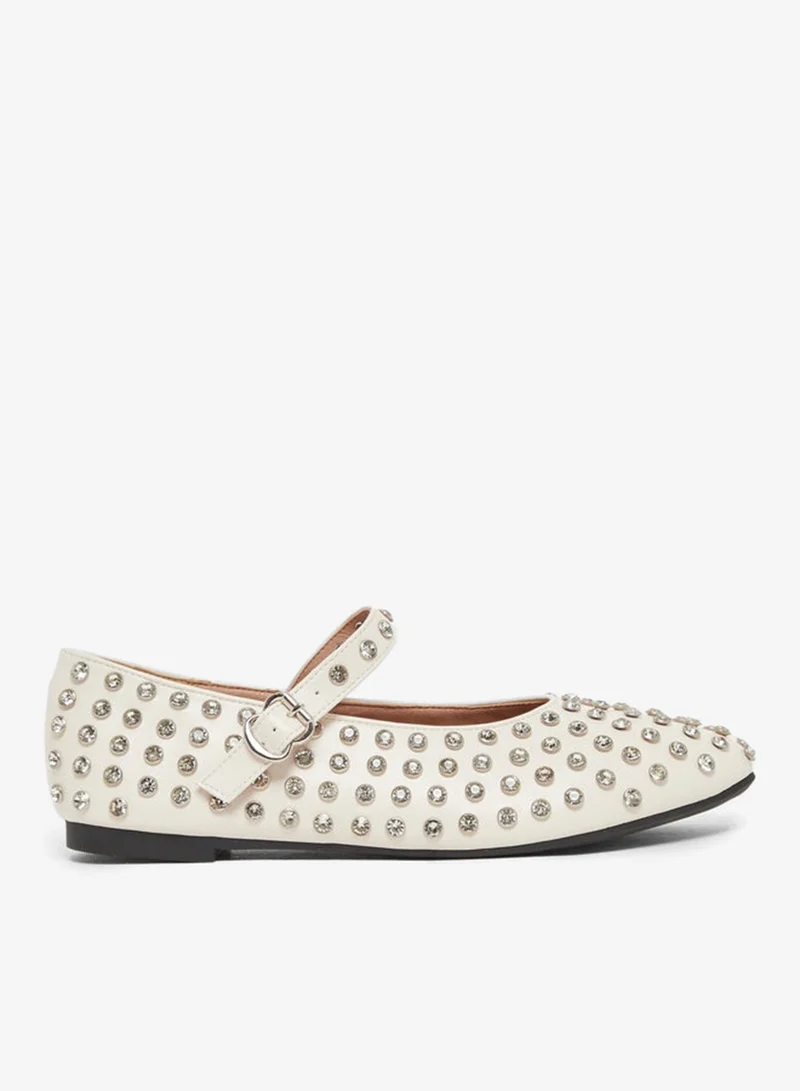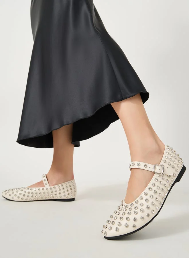 Styli Studded Pointed Toe Ballerina with Buckle Closure