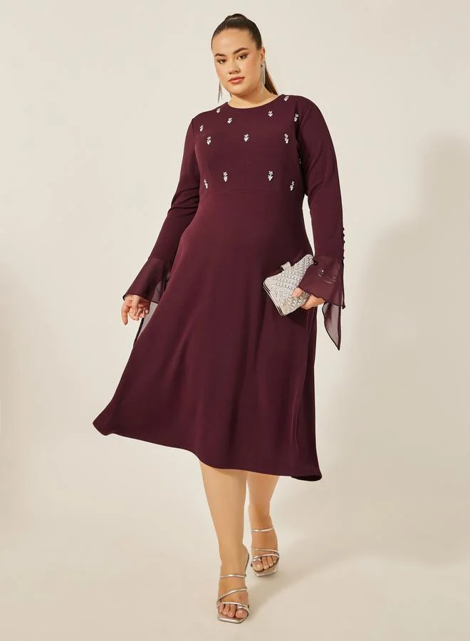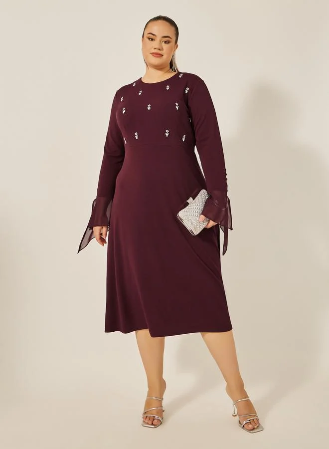 Styli Plus Size Embellished Long Sleeves A-Line Midi Dress