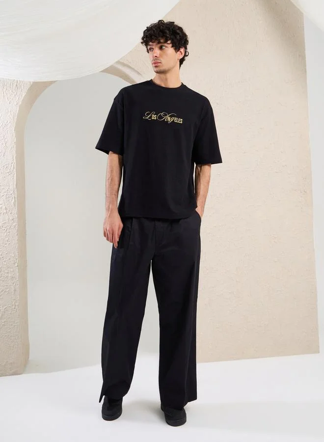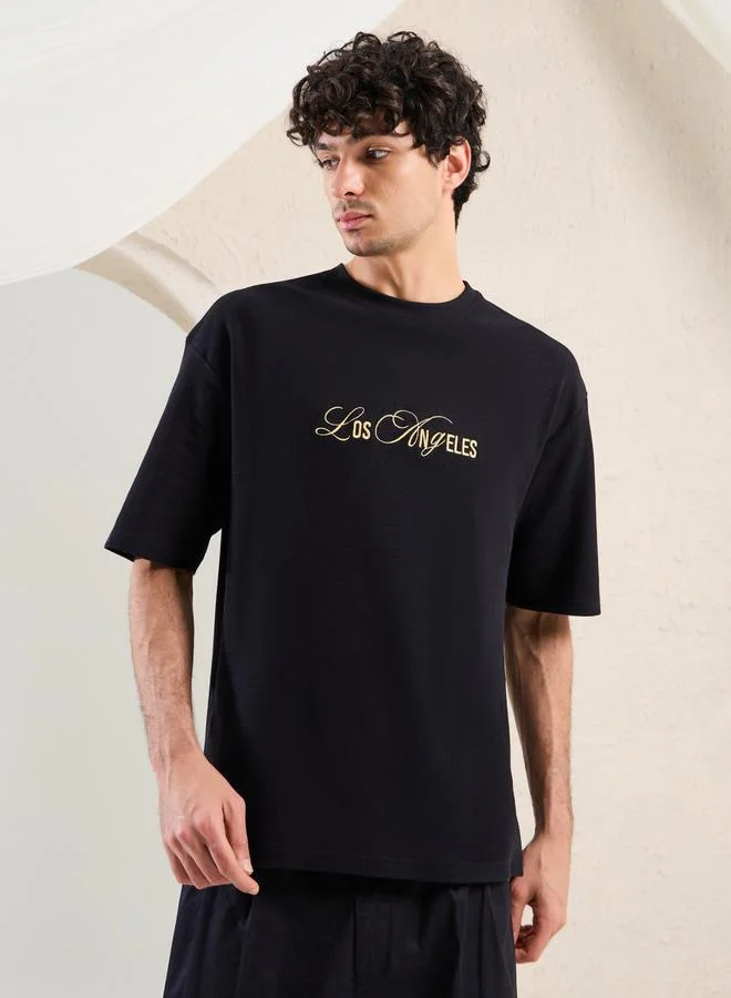 Styli Slogan Embroidered Dropped Shoulder Oversized T-Shirt