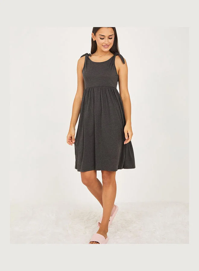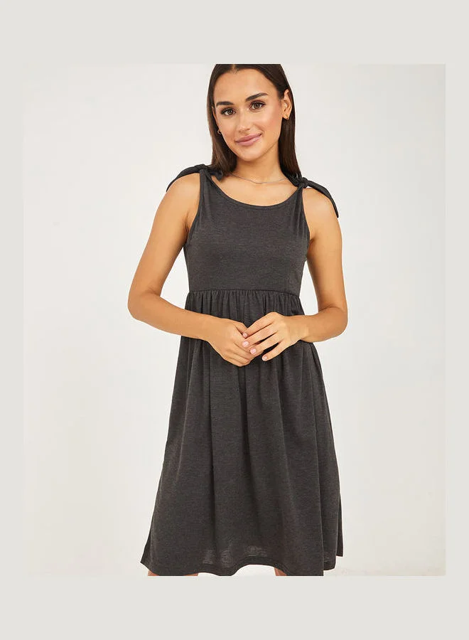 Styli Tie Shoulder Jersey Knee Length Slip Dress