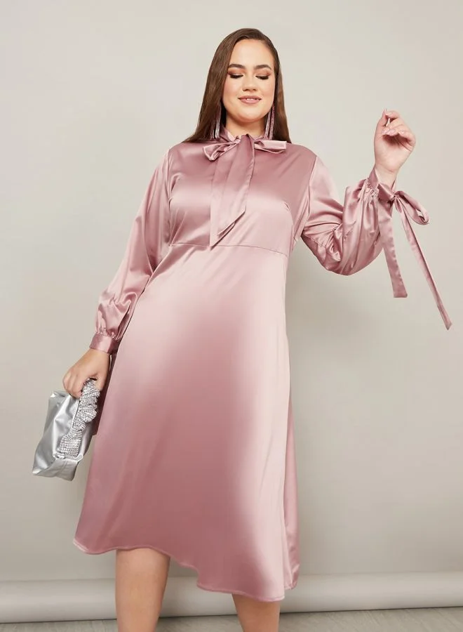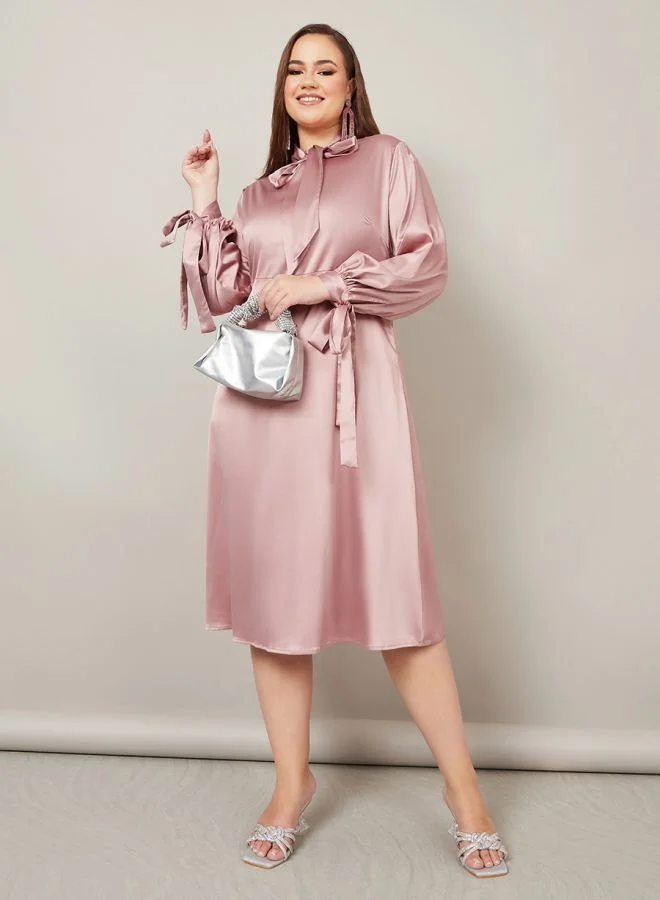 Styli Tie-Up Neck Satin A-Line Midi Dress