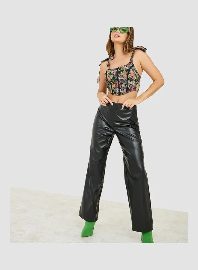 Styli Tie Up Sleeve Floral Pattern Fitted Corset Top