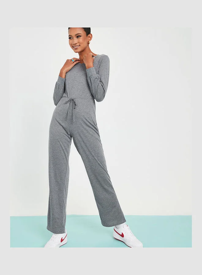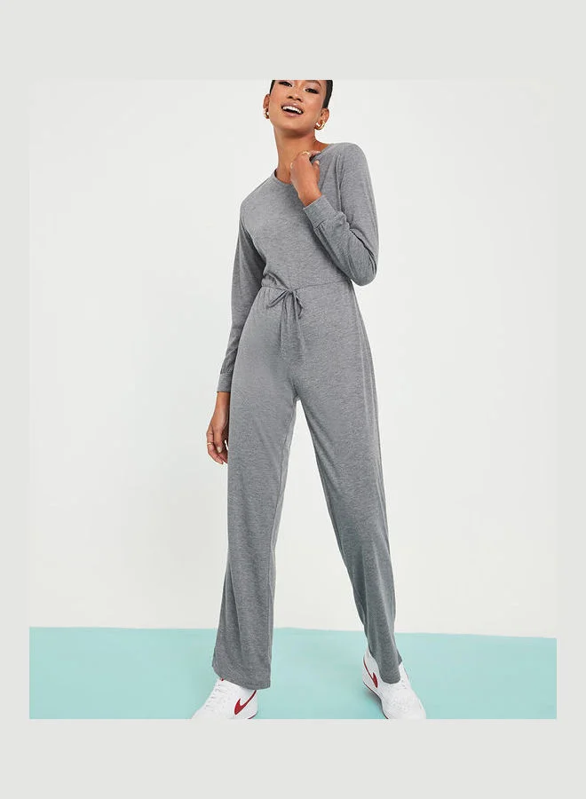 Styli Wide Leg Jersey Jumpsuit with Tie String Waist
