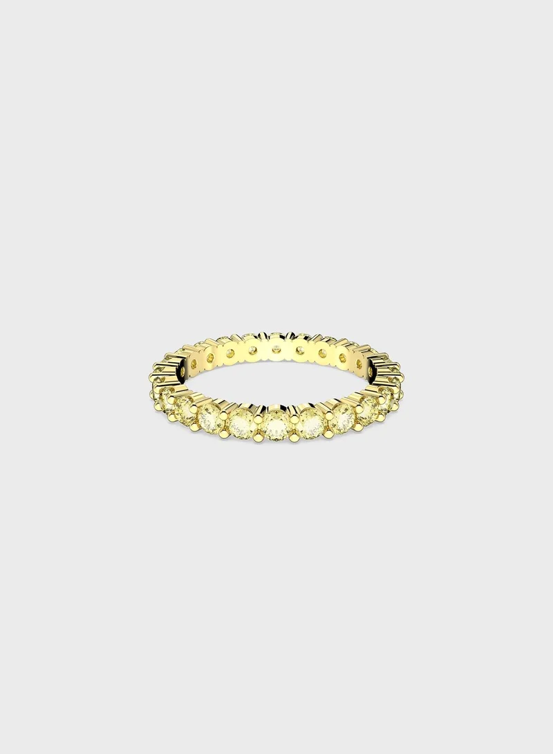 This luminescent ring is a sure way to enhance your style. Set in high-shine gold-tone plating, a perfect row of round yellow crystals creates a dazzling look. Wear on its own for a daily dose of uplifting light, or pair with other pieces from the Matrix family.