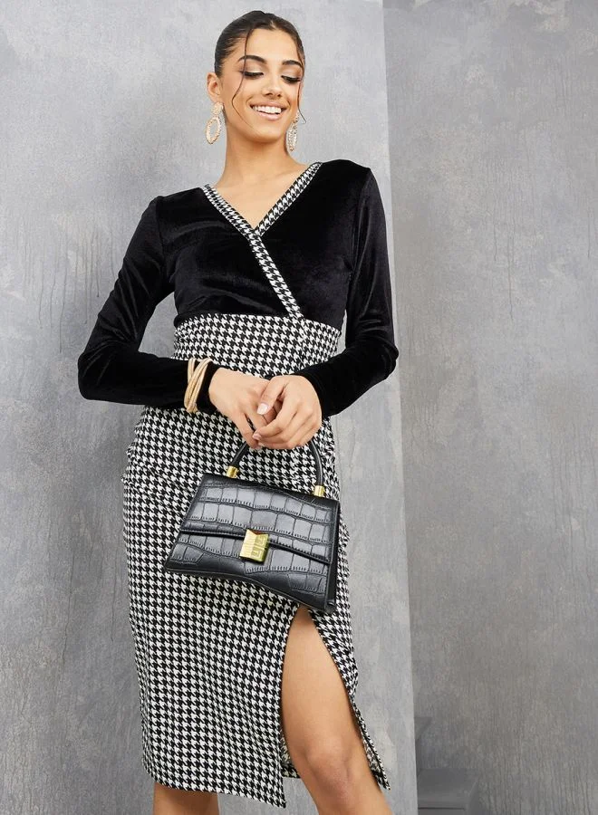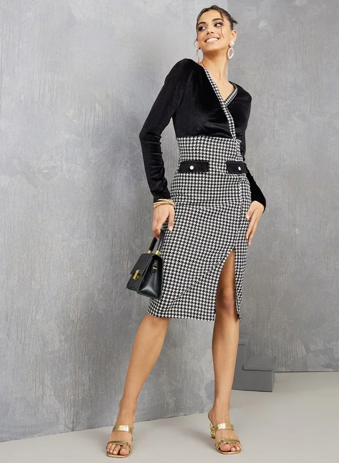 Take Two Houndstooth Print Split Hem Bodycon Dress