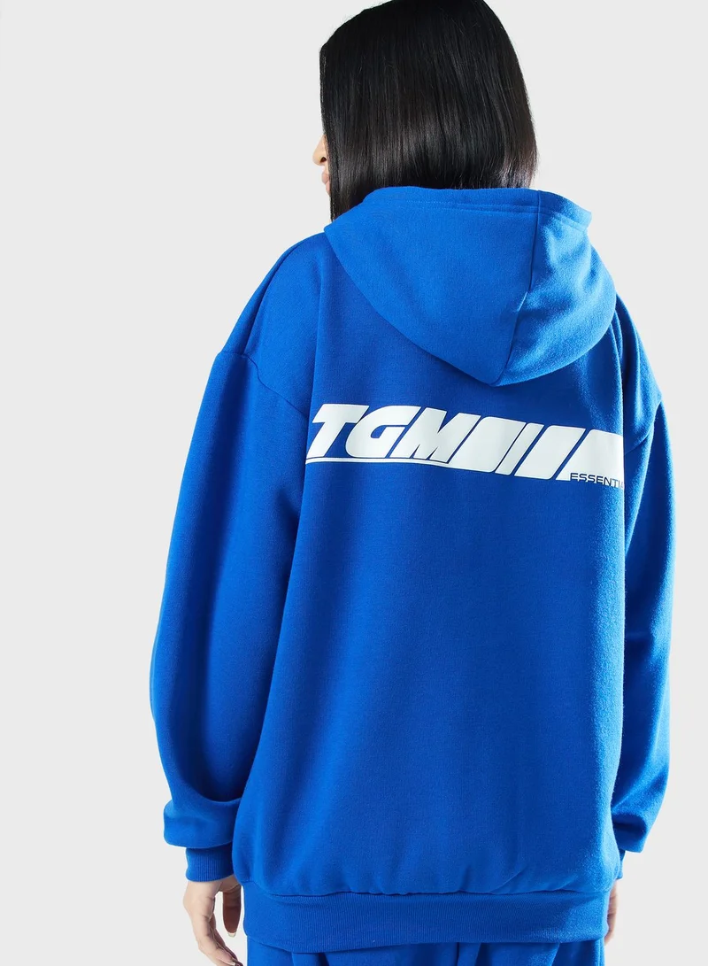 The Giving Movement Oversized Racer Printed Zip Hoodie