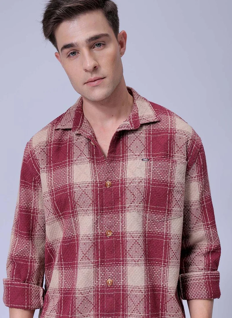 The Indian Garage Co Men Relaxed Fit Checkered Full Sleeves Cutaway Collar Casual Shirt