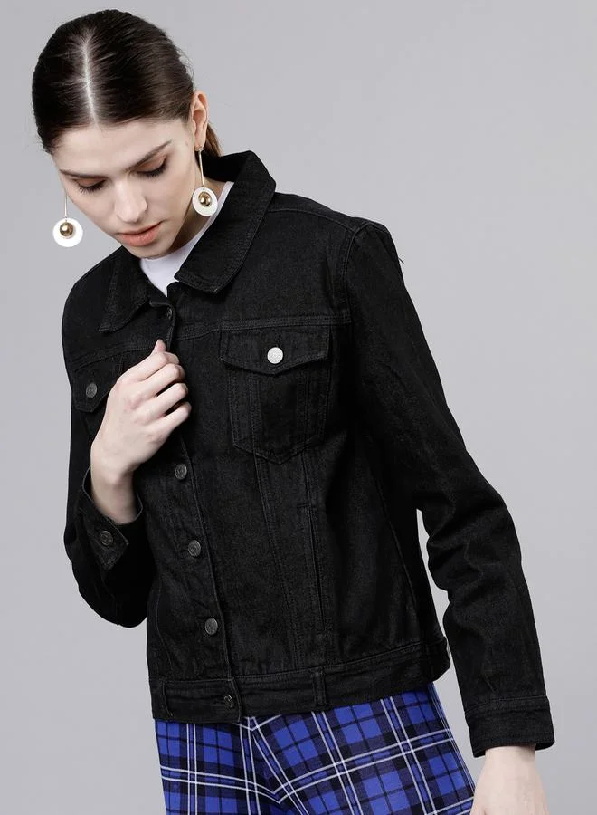 Tokyo Talkies Solid Button Detail Denim Jacket by Styli