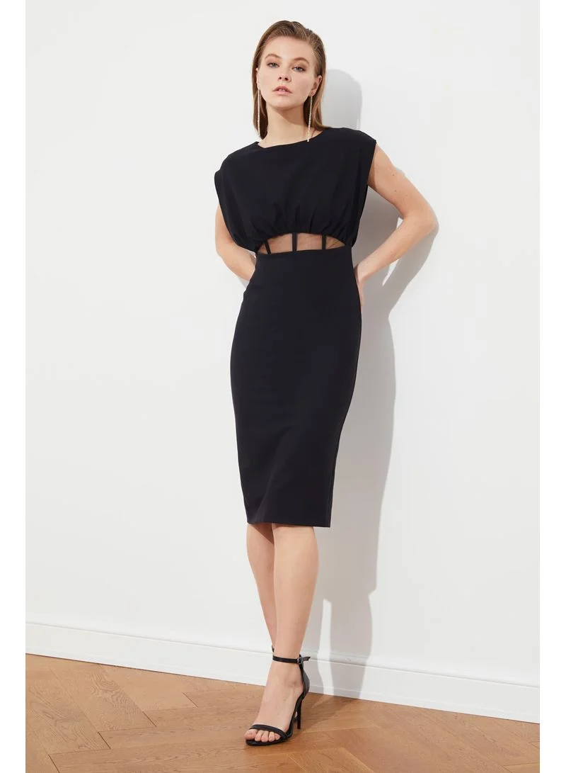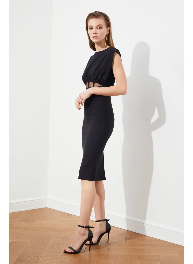 trendyol Cap Sleeves Round Neck Woven Bodycon Midi Dress Black