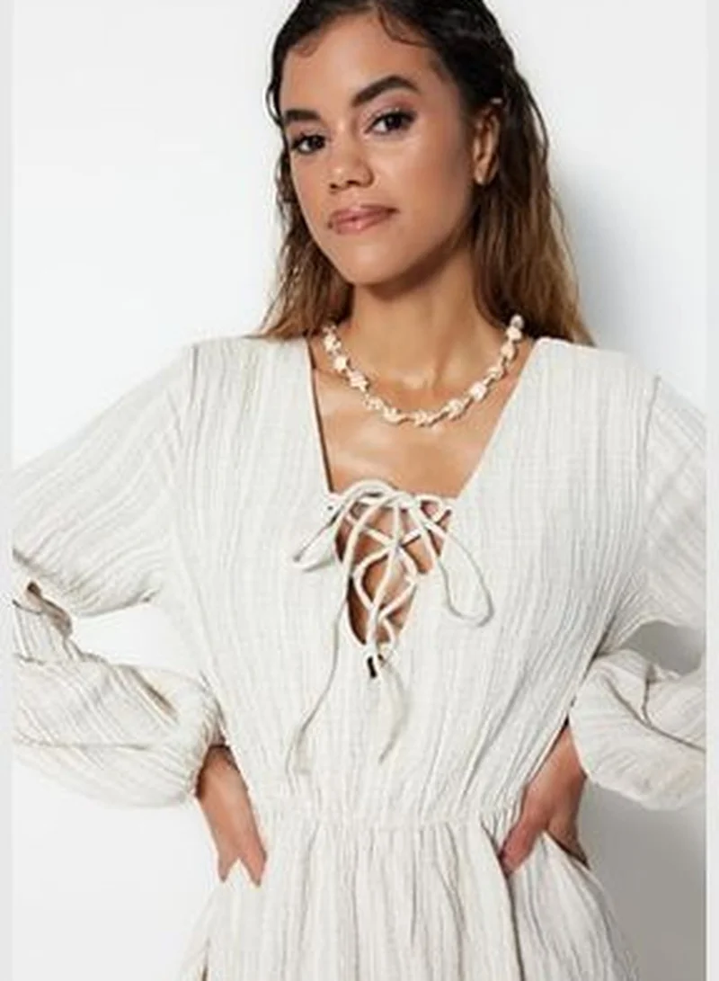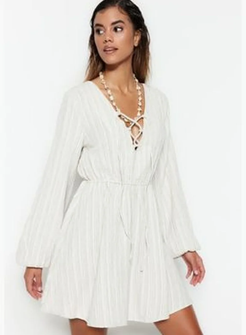 trendyol Ecru Mini Knitted Bound Beach Dress