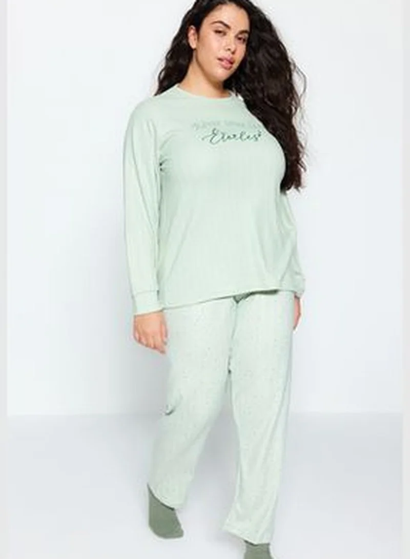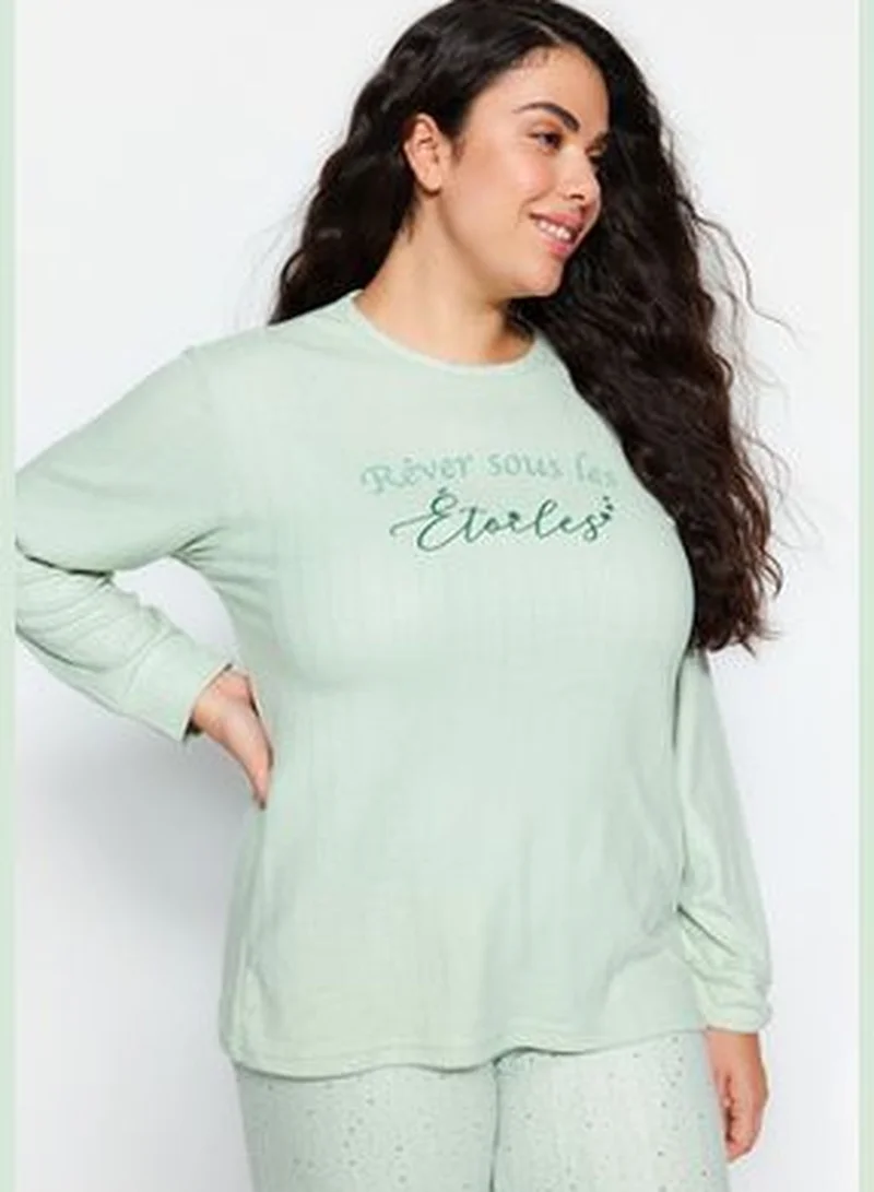 trendyol Mint Crew Neck Knitted Pajamas Set TBBAW24AI00047