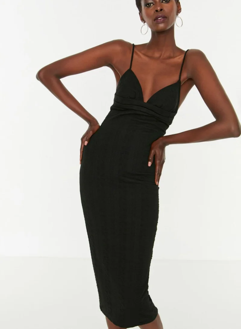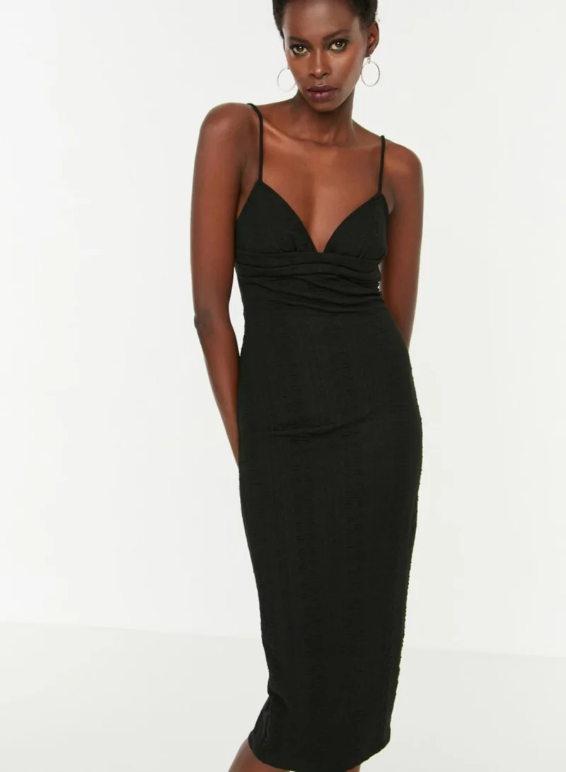 trendyol Plunge Neck Strappy Knitted Dress