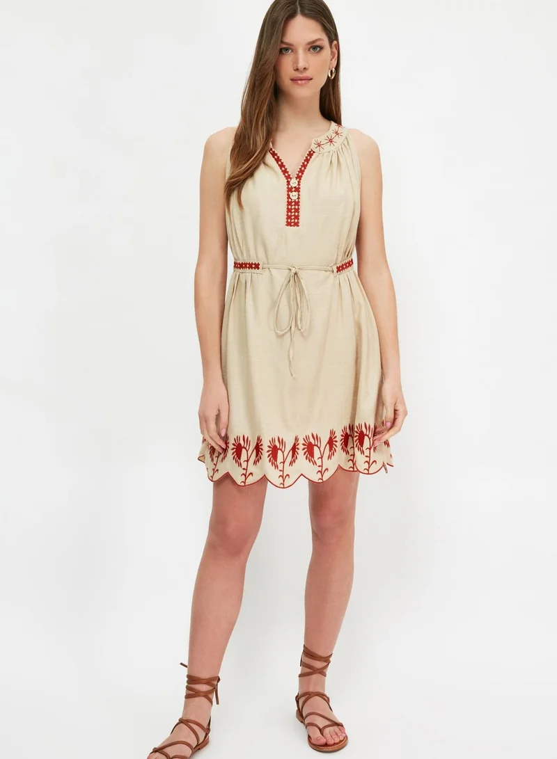 trendyol Self Tie Embroidered Dress