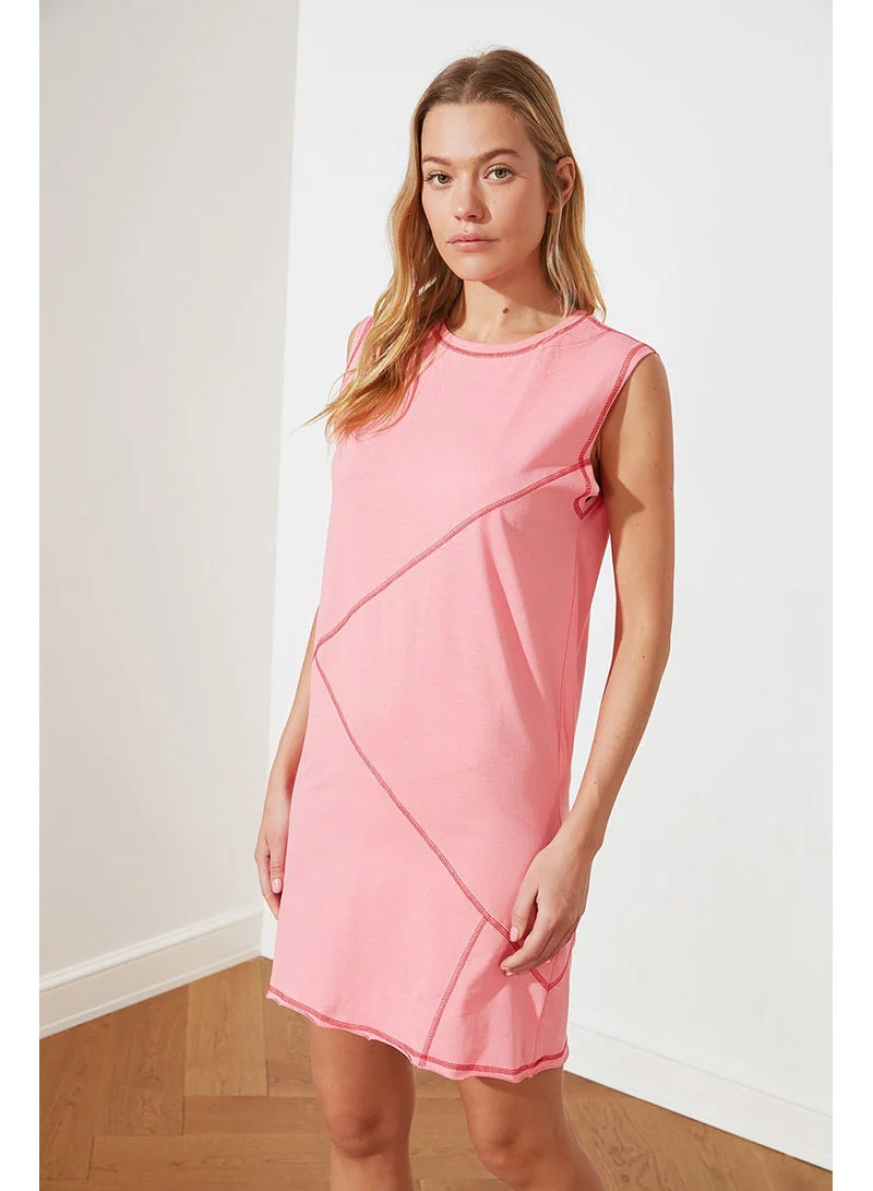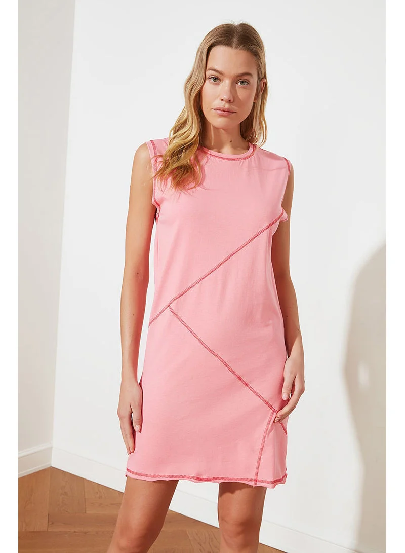 trendyol Sleeveless Stitch Detail Round Neck Shift Mini Dress Pink
