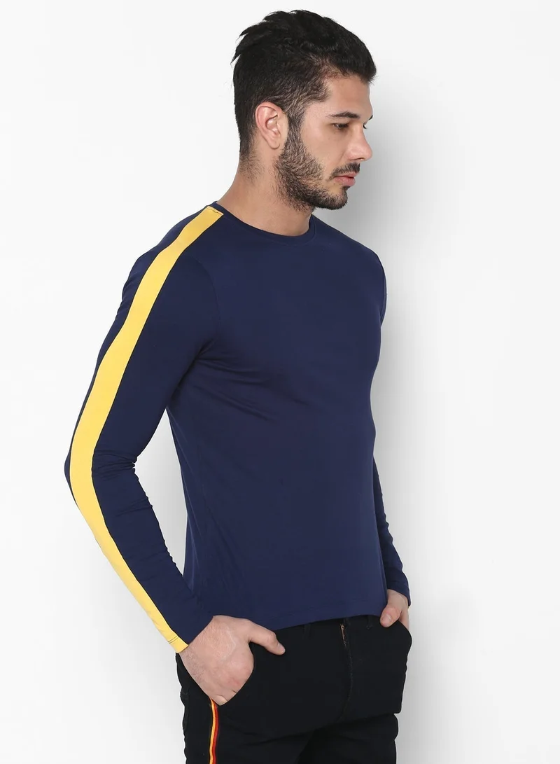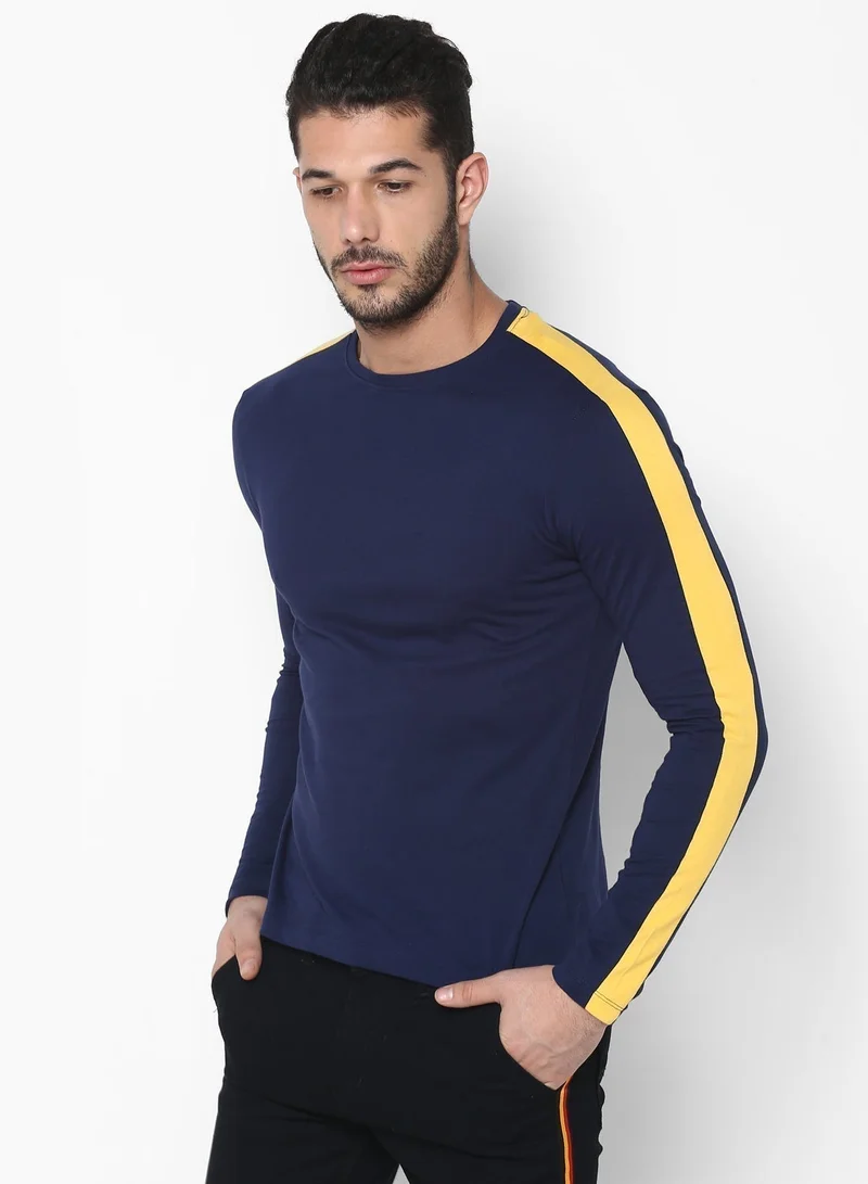 Be a style icon and make heads turn in this trending new design of Urbano Fashion men's 100% cotton round neck navy blue full sleeve side striped t-shirt, which brings the latest trend for the fashion conscious. The in-vogue & vibrant side stripe/tape design running from neck to sleeve, stylish patterned full sleeves to keep you looking cool & fashionable, soft & premium 100% pure cotton fabric with bio-wash, custom fit make it a wardrobe must-have. Pair this uber-cool & trend-setting full sleeve striped t-shirt with any Urbano Fashion jeans or shorts for the perfect casual, party wear or beach wear look, and never go out of style!