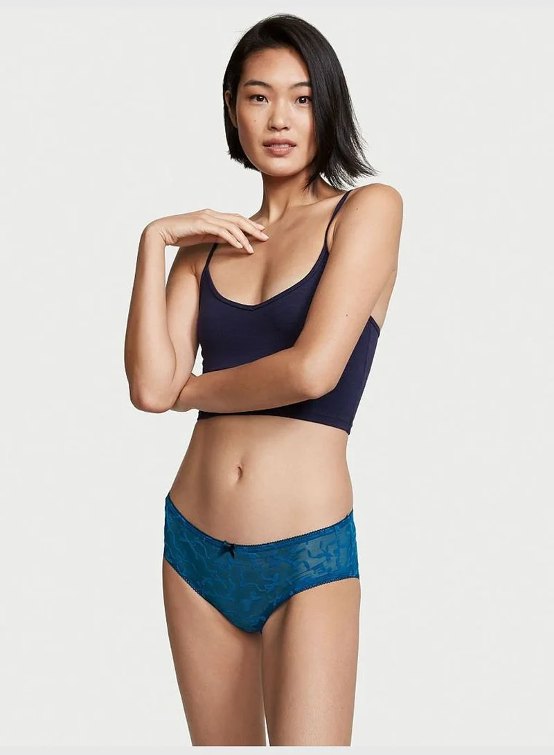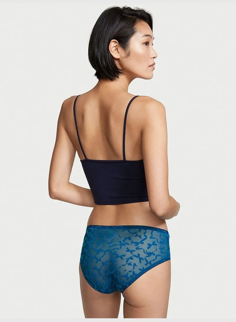 Fully covered with pretty bow details, this essential hiphugger panty flatters your curves and provides an effortless fit for all-day comfort. Medium rise Lingerie ribbon and logo charm at front Moderate back coverage: shows a little, but not all Machine wash Imported