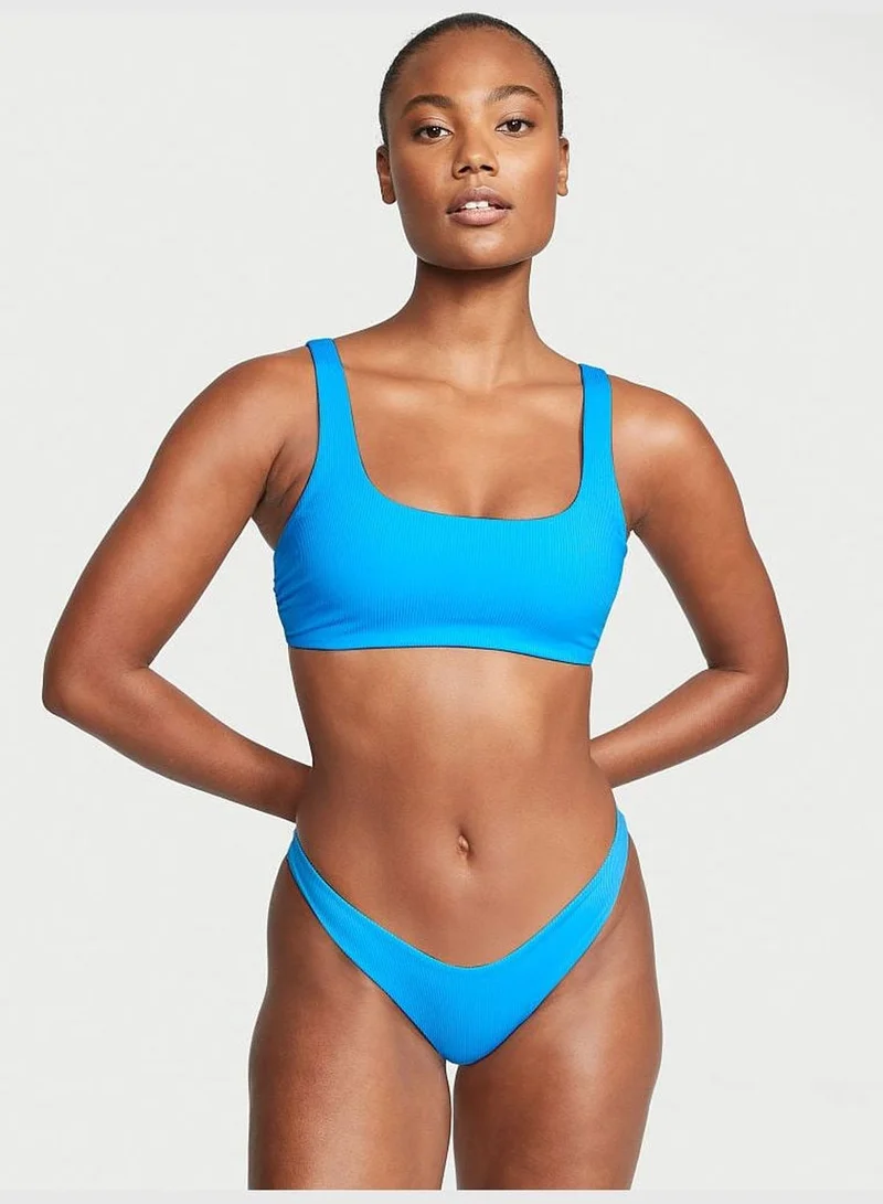 High-cut legs and a skin-baring back bring out the best in your figure, while ribbed fabric creates a uniquely alluring texture. Why not pair with our Ribbed Wicked Swim Top? Low rise with high-cut leg Brazilian fit: minimal back coverage; lots of cheek peek Logo charm accent Hand wash Imported
