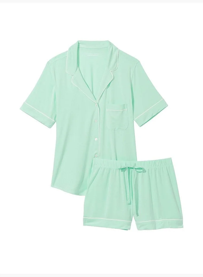 Top priority: Everlasting comfort. This easy set features a short sleeve button-up and matching shorts in our buttery-soft modal with a touch of four-way stretch. Easy fit Short-sleeve, button-front top hits at hips Short with elastic drawstring waist 3" inseam Decorative piping Botanical modal fibers are plant-derived Machine wash Imported