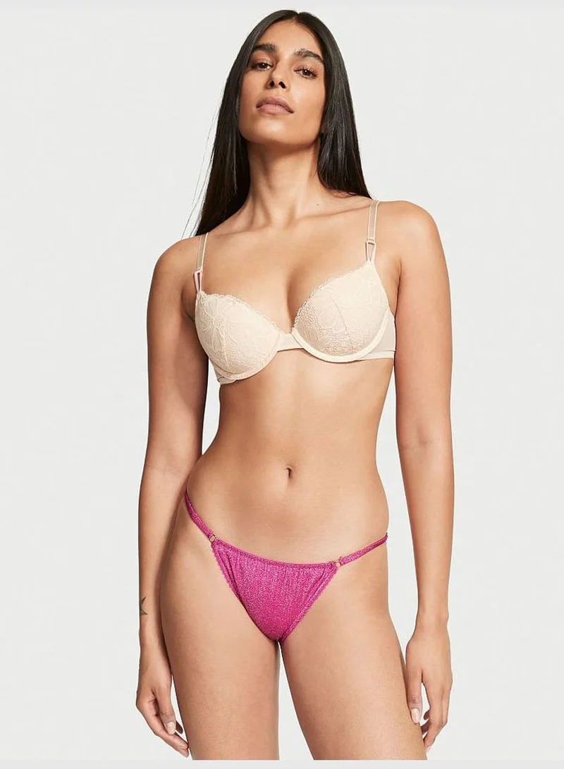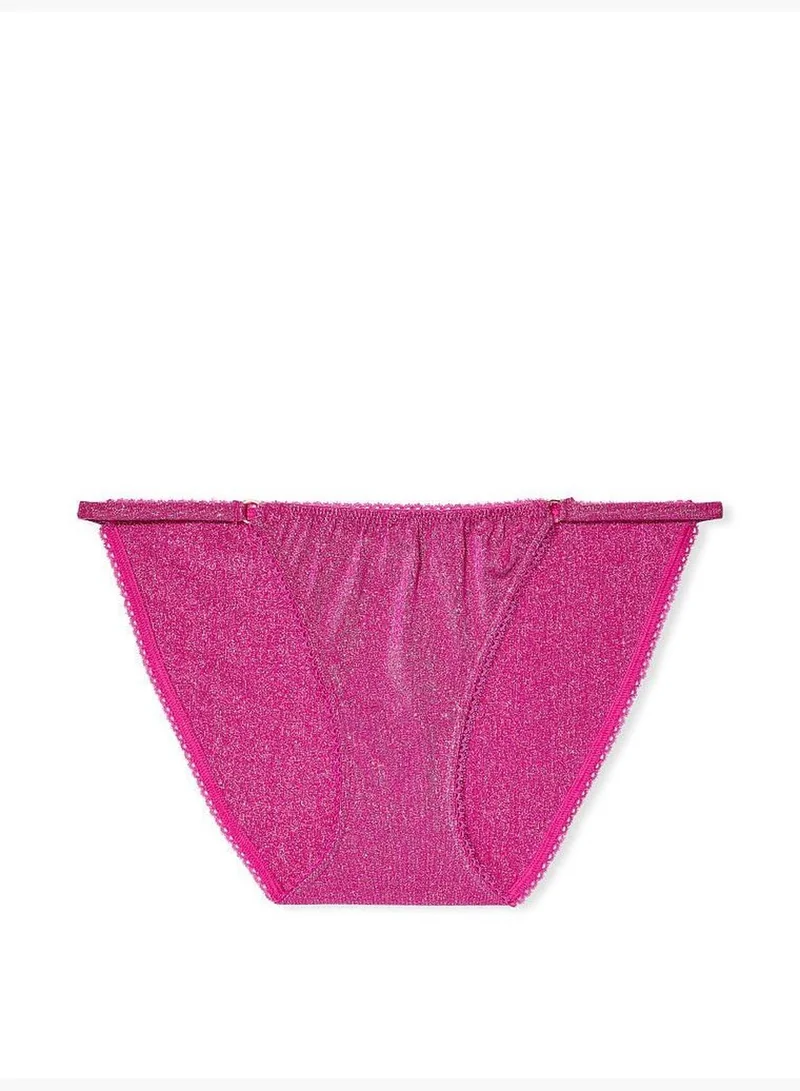 Classic coverage, reimagined. Our everyday string bikini gets a shimmery update in a soft-and-stretchy fabric with tiny flecks of metallic. Low rise String waist Picot trim Gold-tone hardware Cotton panel gusset Moderate back coverage: Shows a little, but not all Machine wash Imported