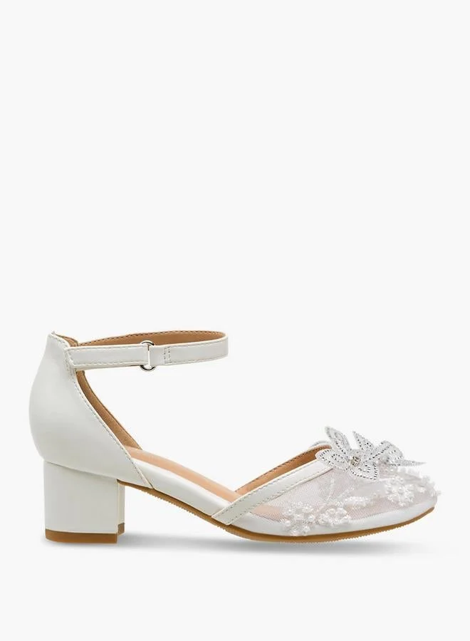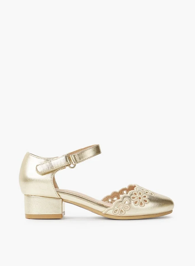 Girls Floral Embellished Block Heel Shoes Ramadan Collections
